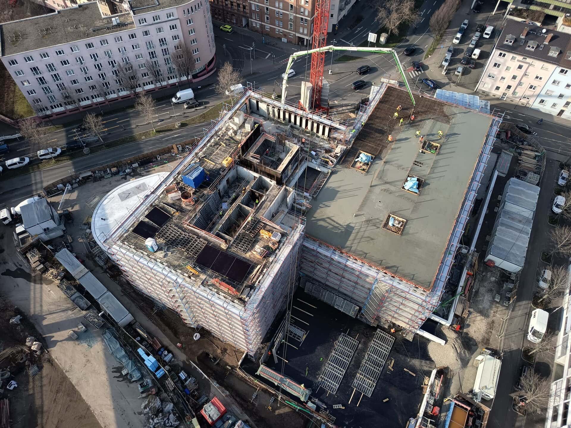 Die gesamte Konstruktion des Gebäudes besteht aus Beton, wobei das Untergeschoss und die Tiefgarage vollständig in einer wasserundurchlässigen (WU) Konstruktion ausgeführt sind.