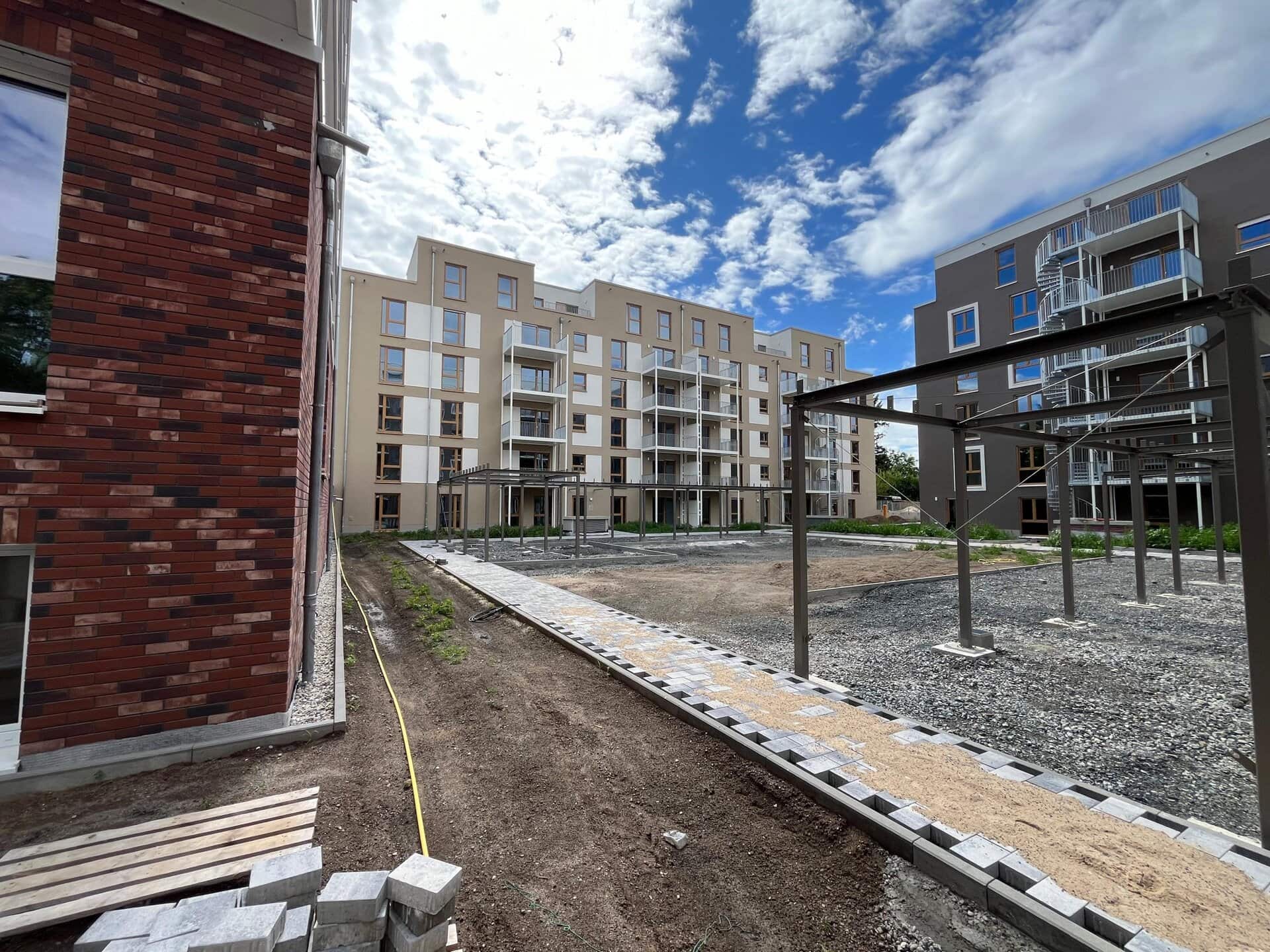 Um jedem der drei Gebäude einen eigenen Charakter zu verleihen, sind unterschiedliche Fassadenentwürfe entwickelt und ein passendes Gestaltungskonzept für jedes Gebäude ausgewählt worden. Die öffentliche Kindertagesstätte mit sechs Gruppen verfügt über einen eigenen Freibereich. Zur Lösung der Parkplatzsituation stehen 79 Tiefgaragenstellplätze sowie 30 Stellplätze in einer öffentlichen Hochgarage zur Verfügung.